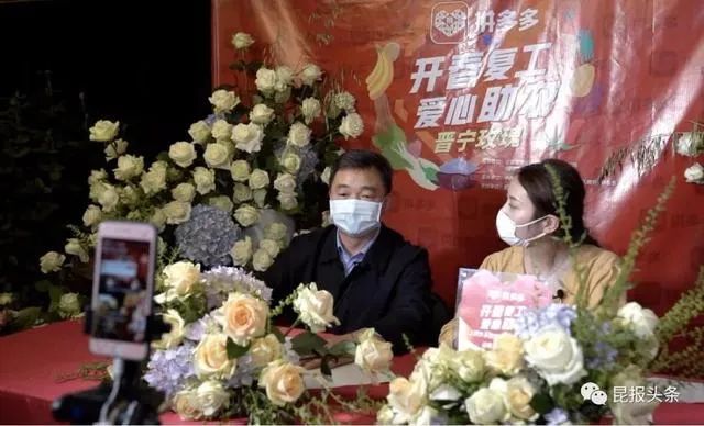 3月8日,晋宁区区长徐波出现在拼多多“抗疫助农”专区,拿着玫瑰花,从晋宁种植鲜花的历史开始娓娓道来。徐波还为网友耐心讲解玫瑰的花语和功用、保鲜方法等,当晚直播间共有100余万名网友涌入,其中10万人成为店铺粉丝,线上订单卖出35.6万枝鲜花。
