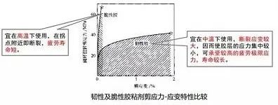 胶粘剂按应力-应变特性分为韧性及脆性两种,如图所示。