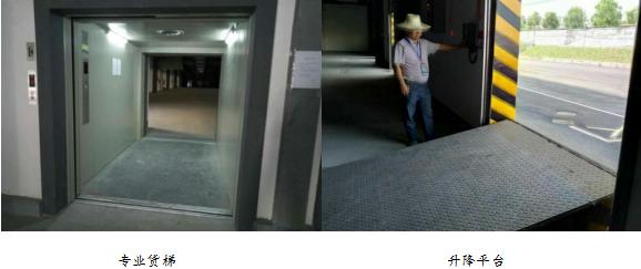 其建筑根据功能的区分,库区分为一、二、三层楼,一楼安装最先进的升降平台,五部专用货运电梯,库内配有冷藏、冷冻各温层冷库。园区内拥有各种车型的大型停车场。