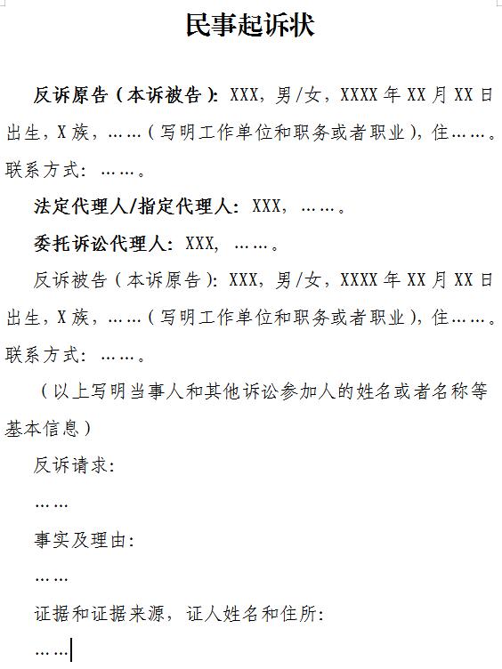 原标题:《文书模板 | 民事反诉状(公民提起民事反诉用)》