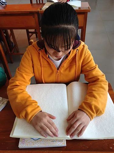某日一个上午,听说图书馆来了新的盲文图书,整个教室一下子沸腾起来,莉莉和同学们迫不及待地在课后帮忙整理起新书。整理妥当之后,大家都挑出了自己的最爱,开始安静的“阅读”起来。莉莉捧着一本《老人与海》坐到了图书馆靠窗的位置,沐浴阳光,触抚文字。