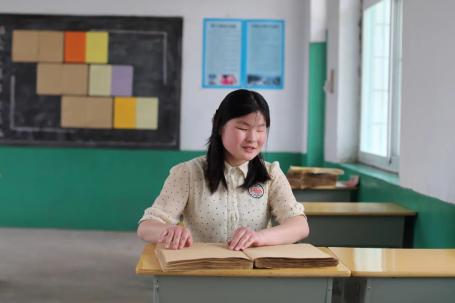 军军是河北孟杰盲人学校的一名盲生,他非常喜欢历史方面的图书,其中最感兴趣的便是《三国演义》了。在进入“我送盲童一本书”公益项目为学校捐赠的盲文阅览室时,他激动不已,第一次触摸到盲文版《三国演义》时,他一个字一个字的抚摸,生怕错过任何一处精彩。