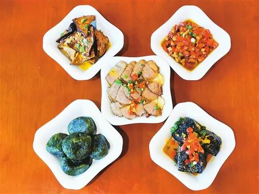 招牌推介:油炸臭豆腐、姊妹团子、龙脂猪血、三角干子、牛肉馓子、红煨猪脚、荷兰粉、八宝果饭