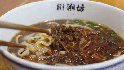 长沙本地人吃米粉,更多偏好食扁粉,因为扁粉比起圆粉来优势是比较容易入味,米粉本身是没有任何味道的,全靠汤来调味,所以汤头是一碗米粉的关键。