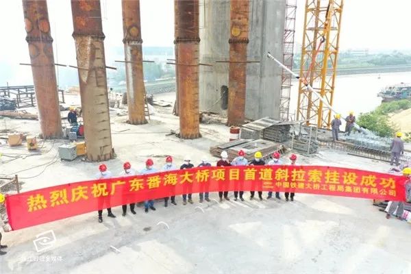 广东番海大桥首道斜拉索挂设成功,力争在2020年底主线通车。