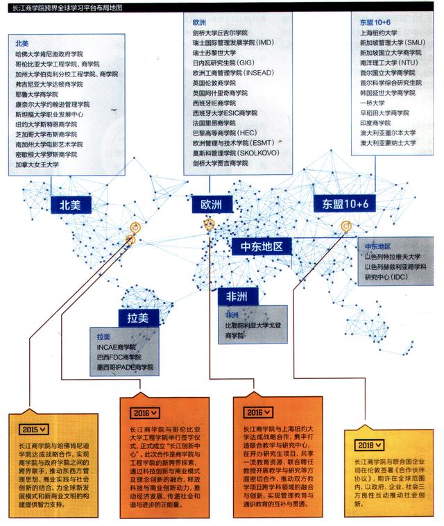 长江商学院历史上推出的第一个全球学习的双学位EMBA课程项目,即选择与欧洲最高水平的商学院瑞士国际管理发展学院(瑞士IMD商学院)展开合作,长江商学院如今已与全球40多个商学院展开学术研究,课程研发,学