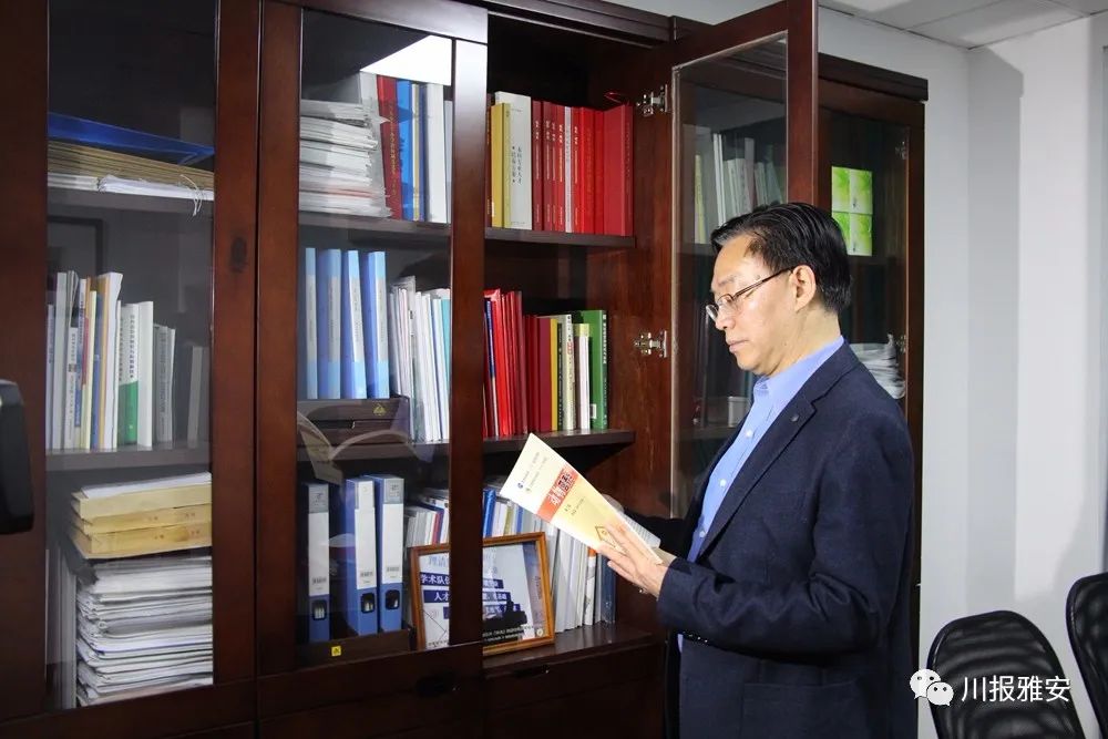 4月24日上午,记者拜访陈代文时,他正在办公室接听电话,他的书桌上、书柜里,满是与动物营养、动物医学等学科相关的各类文献。