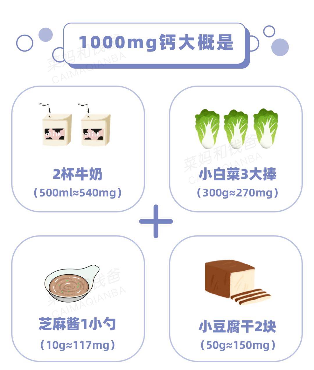 妈妈饮食的钙摄入量,不会影响乳汁中钙含量的高低。不过因为泌乳还是会丢失一部分,所以哺乳期钙的需要量比普通人要高,达到每天1000 mg。