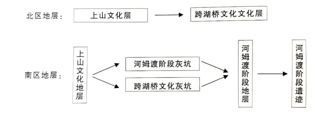三是在遗址“北区”发现了跨湖桥文化类型遗存与上山文化类型遗存的叠压关系,从地层关系的角度证明了上山文化类型的年代确实早于跨湖桥文化。