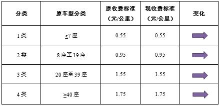 按照交通部统一标准,高速公路客车收费标准基本不变,但个别车型略有降低。