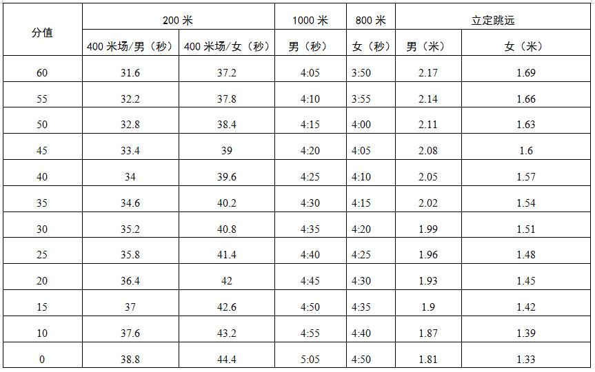 深圳市中考体育项目评分标准