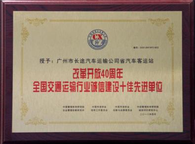 在50年的发展中,省站荣获“改革开放40周年全国交通运输行业诚信建设十佳先进单位”“全国交通运输行业文明示范窗口”“全国道路运输百强诚信站场”“广东省用户满意服务明星企业”、“广州地区文明优质服务示范窗口”等上百个荣誉。