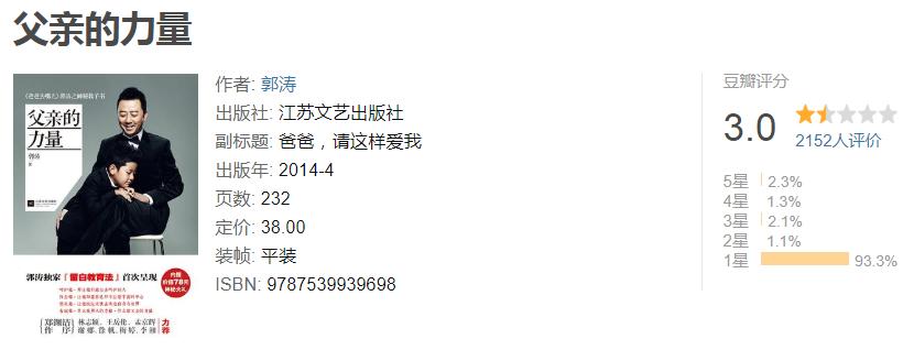 早在2013年,郭涛带着儿子石头一起参加了综艺节目《爸爸去哪儿》,便在人们心里树立起了一个“严父”的形象,可能是想给这一人设增添一点色彩,郭涛于次年出版了自传《父亲的力量》。