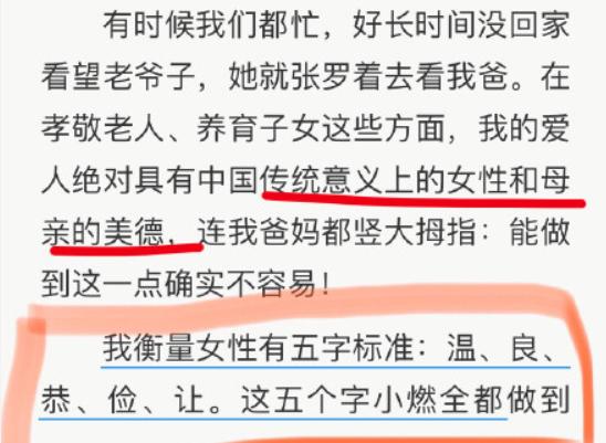虽然郭涛在书中对老婆不乏赞美之词,但他对小燃的肯定,只停留在她一直毫无怨言地操持这个家,为他和儿子打理好一切。