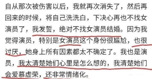 “我发誓,绝对不找女演员结婚,因为我觉得演员,特别是女演员这个身份很尴尬,也很讨厌。”