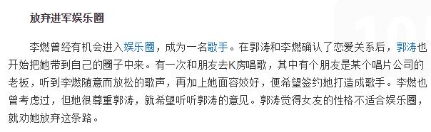 其实呢,郭涛妻子李燃也毕业于中国传媒大学,曾经也有机会进娱乐圈,不过因为郭涛对娱乐圈女性的偏见,此事也就作罢了↓