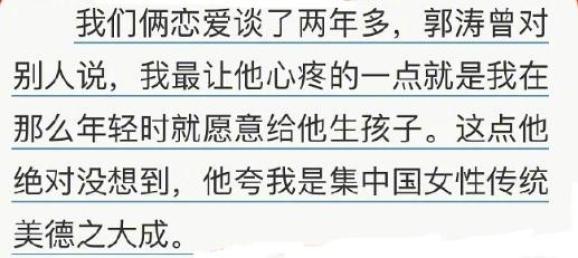 “我衡量女性有五字标准:温良恭俭让。这个五个字小燃(郭涛老婆)全都做到了。”