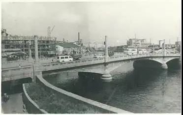 位于昌化路桥不远处的江宁路桥原为始建于1929 年的5孔木桥,因临近原中央造币厂而得名“造币厂桥”。后因年久失修,木桥朽损,车辆行过时桥身摇晃严重。