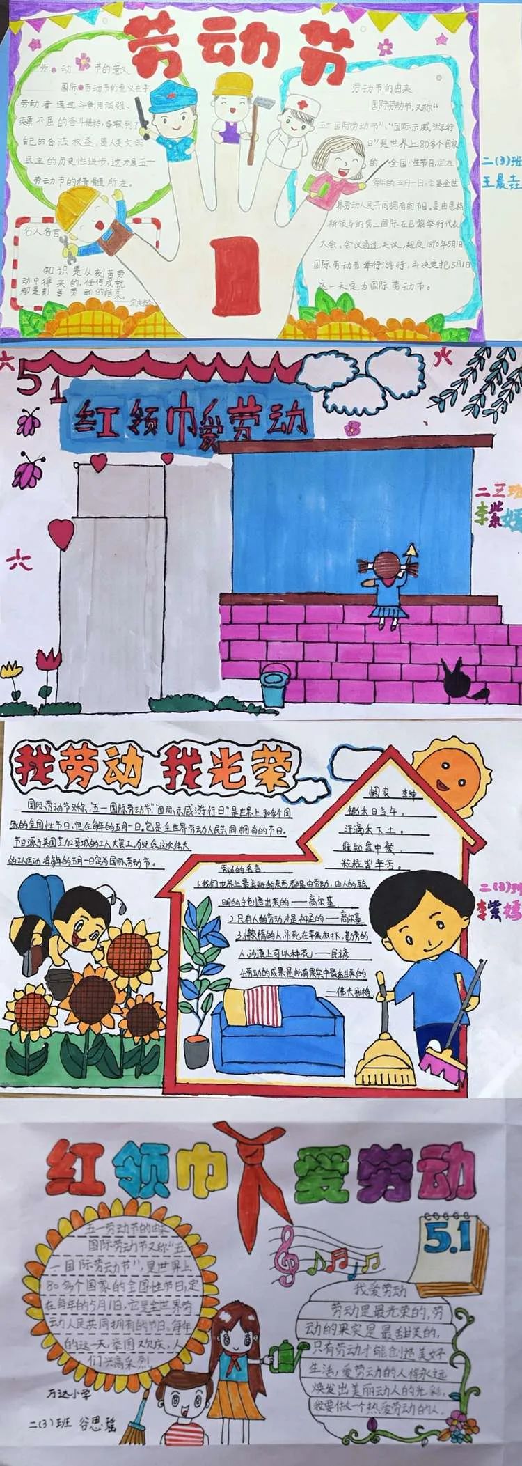 在这丰收的季节,二三班全体同学一起制作了“热爱劳动,我光荣”主题手抄报。