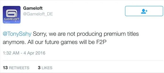 所以说, Gameloft 并不是被 “ 臭名昭著 ” 的维旺迪毁掉了,而是被市场和玩家抛弃了,在游戏里加入氪金系统,是时代发展的必然。不可否认的是, Gameloft 的确生产过很多优秀的游戏,有过辉煌,陪伴了一代人的青春,但恶龙不断出现,勇士却终将老去,他也依然败给了不断改变的市场。