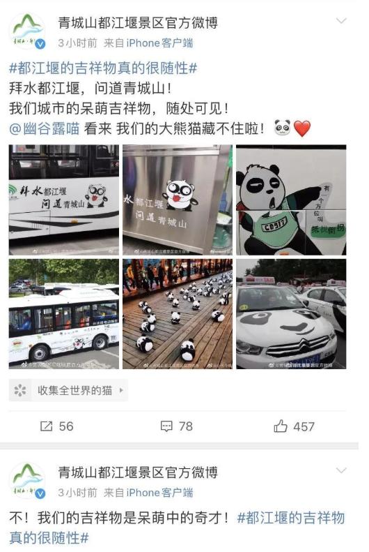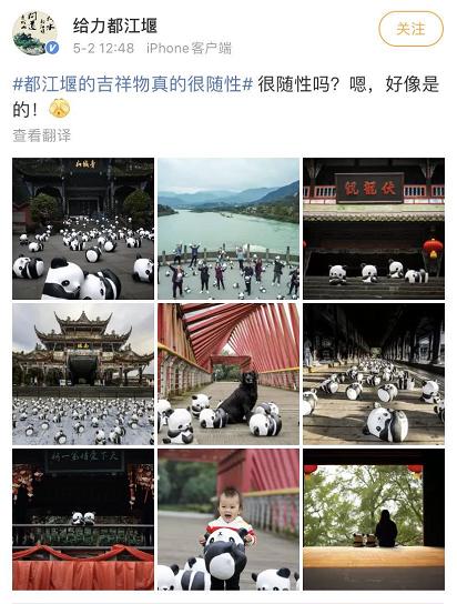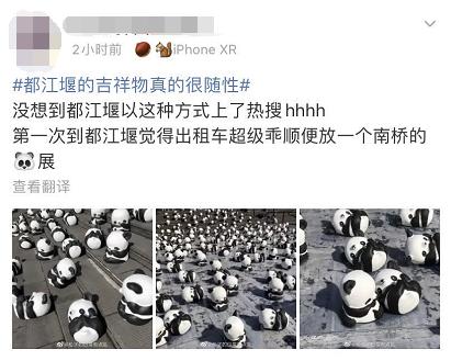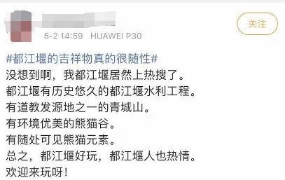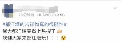 “没想到都江堰以这种方式上了热搜,”许多网友也开始在微博上分享自己在都江堰拍到的“熊猫吉祥物”。