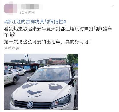 还有网友晒出了都江堰的熊猫出租车,“我们都江堰的出租车可是很可爱的!”
