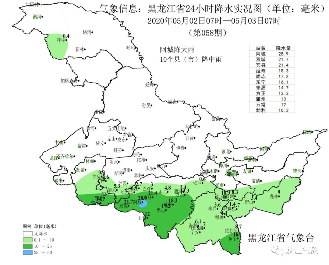黑龙江省气象台2020年5月3日17时发布3日夜间至6日白天全省天气预报: