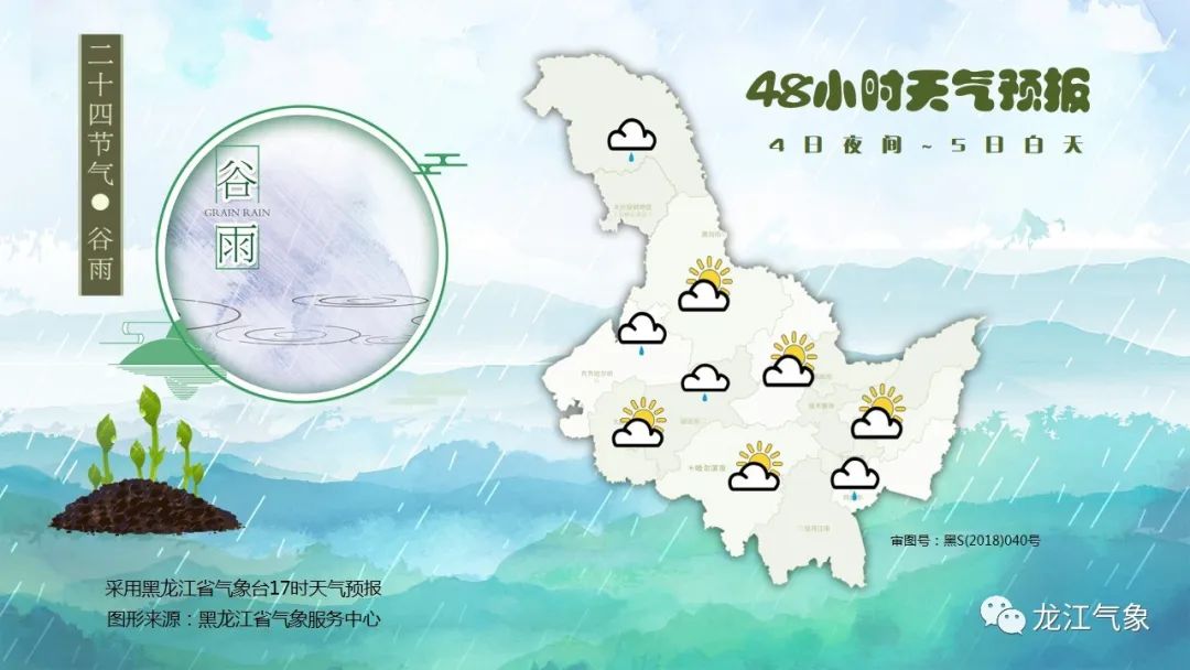 3日夜间到4日白天:双鸭山东部、鸡西、牡丹江阴有中雨,大兴安岭、绥化北部、哈尔滨东部、佳木斯、双鸭山、七台河阴有小雨,其它地区多云。