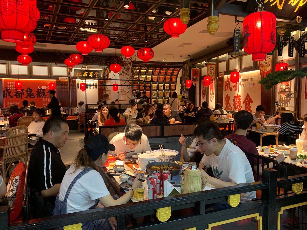 4月29日刚刚开张的成都鬼瘾食门庭若市,熟悉的川菜味香气四溢。“前面还有67桌,但我还是会继续等。好久没吃辣了,就想念这一口!”眼尖的徐先生还发现新店开张,有吃100元返100元电子券的优惠活动,给力促销让吃货更加欲罢不能。