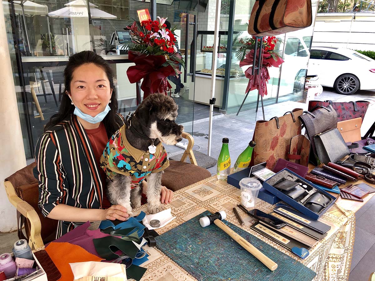 而在她的对面,是一家教小朋友DIY皮具的摊位,同时也卖极具设计感的皮质工艺品。授课老师林小姐平日里在自己的工作坊工作,她坦言在这儿的摆摊给了她更加难忘的体验,“感觉艺术更加接地气了,居住在旁边的居民,一家三口出门逛个街就能体验到亲自设计、剪裁皮具的乐趣。”