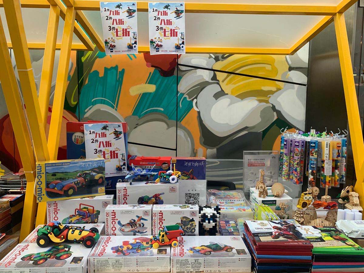 除了成年人休闲娱乐,“侬好集市”也是孩子们的乐园。德国进口的美扣美扣拼插玩具满1件打九折,2件打八折,3件打七折,深受父母和孩子的喜欢;为迎接开学季,还有各式文具供选择。