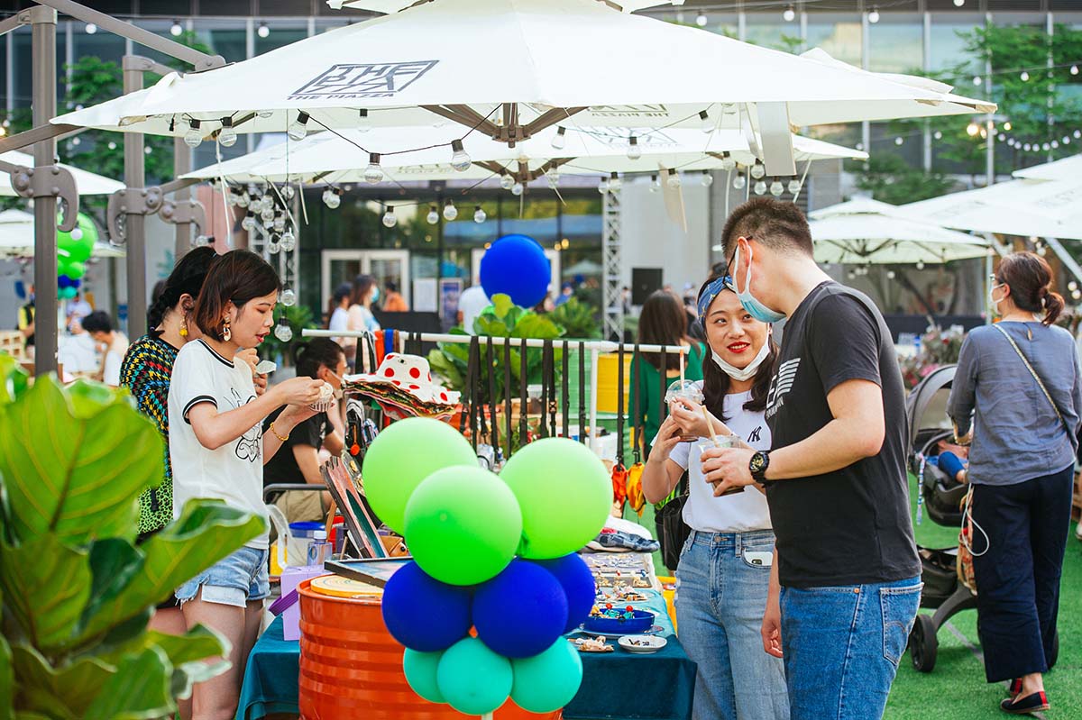 静安嘉里中心南广场联合品牌及社群,融合健身、瑜伽等运动元素,开展“feel good市集”;兴业太古汇携手凡几一起带来COMMON SENSE感官市集,汇聚20余家独立原创品牌,在北广场呈现唤醒“视、听、触、嗅、味”五感的感官市集,复原“漫游”生活乐趣;而久光百货,则集合馆内运动品牌,在久光步行街推出“运动市集”。