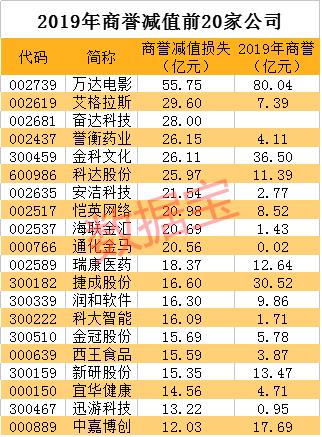商誉减值损失是近年来A股市场商誉下降的重要因素,2018年损失超过1600亿元,2019年损失超过千亿元。具体到公司方面,有近30家上市公司商誉减值损失超过10亿元,10家公司损失超20亿元。