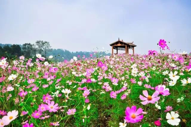 格桑花默默地开在农舍旁、小溪边、树林里,随处可见,在纷繁的世俗中享受着那恬淡的安静,简单婉约。