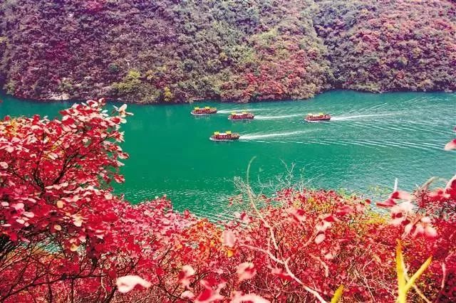 而在这个时节,坐在小三峡上的游轮上看整个山坡火红火红,那是多么的令人神往。