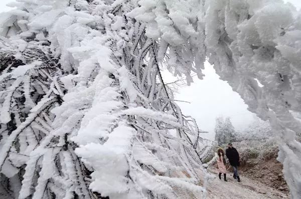 冬季只要下冻雨,灰千梁子就会出现雾凇奇观。