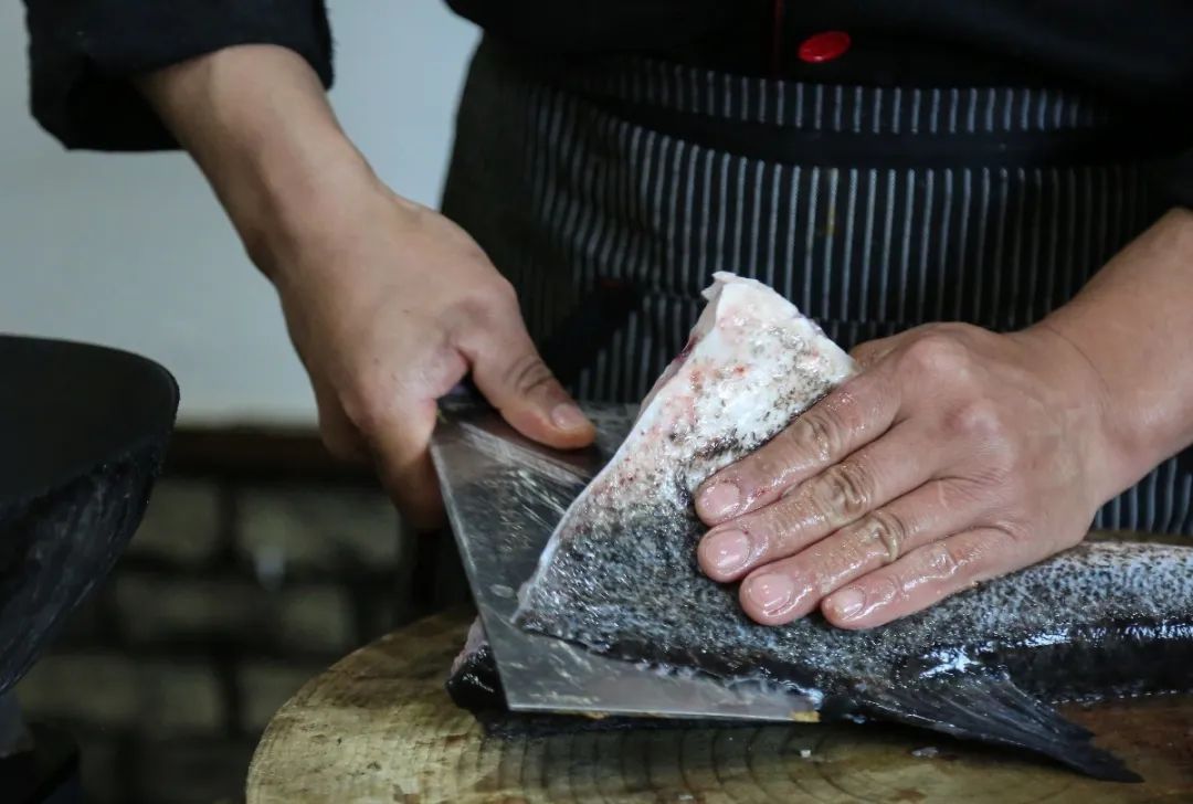 2、把鱼肉片成薄片,用葱姜水浸泡去腥。