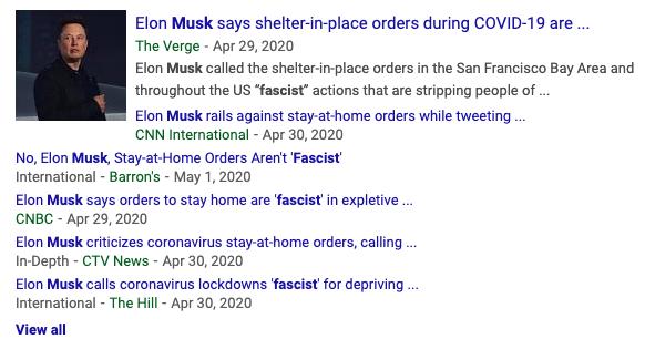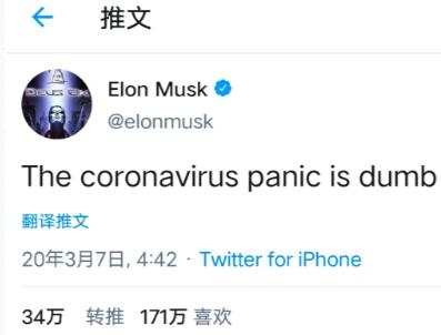 消息一出,人们纷纷站出来指责马斯克的冷血和贪婪,称马斯克就是一位血腥资本家,只考虑到自己公司的盈利、自己的财富,完全不考虑美国人民的死活。还拿出之前同样“断章取义”的推特作为辅证,“新冠传染病是愚蠢的(The coronavirus pandemic is dumb)”,来证明马斯克对于人民生命的冷漠,然而原文并不是如此。