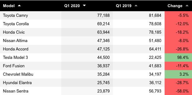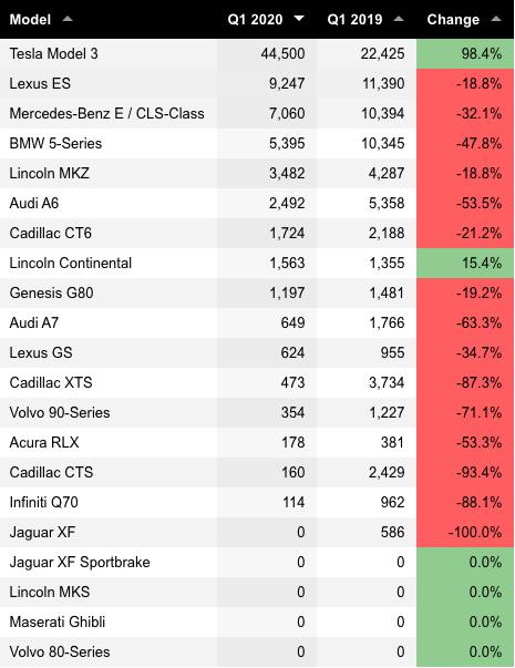 在中国市场,特斯拉国产化不过几个月时间,然而Model 3不仅在新能源车型销量中遥遥领先,还能够在包括燃油车的同级车型中占一席之地。(第一季度,特斯拉还未降价时)