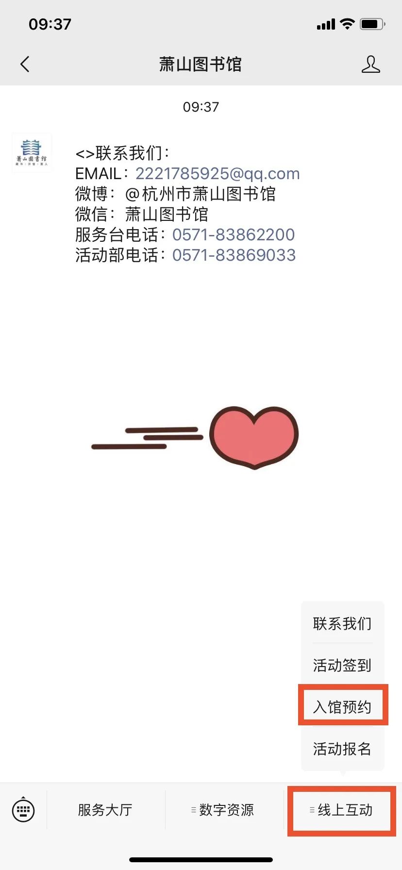 关注萧图微信公众号-菜单栏点击“线上互动”-点击“入馆预约”或扫描下图二维码进行预约。