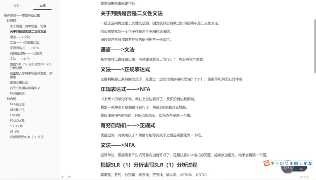 先声夺人的是条目明确的大纲:不同科目、不同单元、每一个知识点形象呈现,方便了查阅,有助于复习。笔记内容充实而完整,字字句句都透露着一个理科生的严谨。