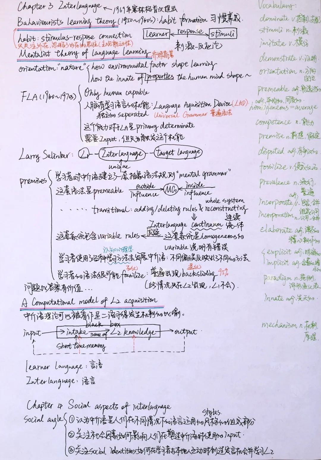 2018级汉语言文学董静格:我觉得手写笔记的缺点就是不好增减。所以如果有想要补充的内容,我一般会换一种颜色的笔,或者是用小便签贴在旁边的方式,看起来更美观一点。