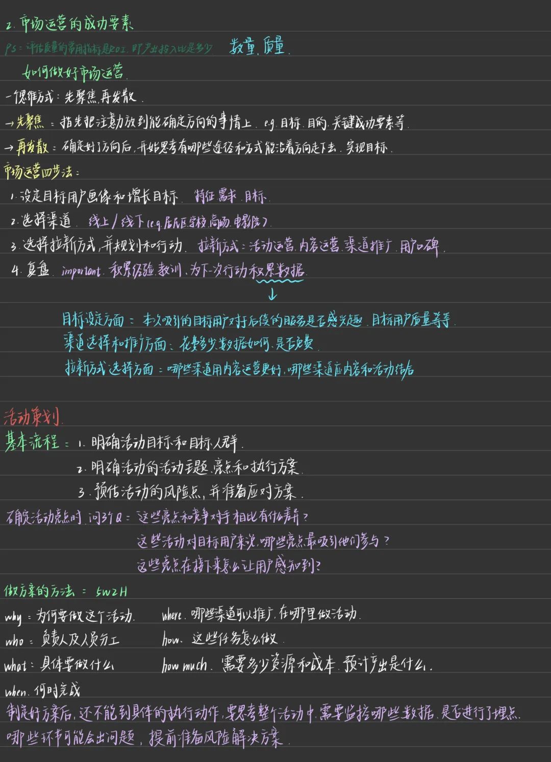 改良后的康奈尔布局、黑色的方格纸、一目了然的思维导图,配上淡黄的高光,还有记录疑惑的小问号。壹引其纲,万目皆张。