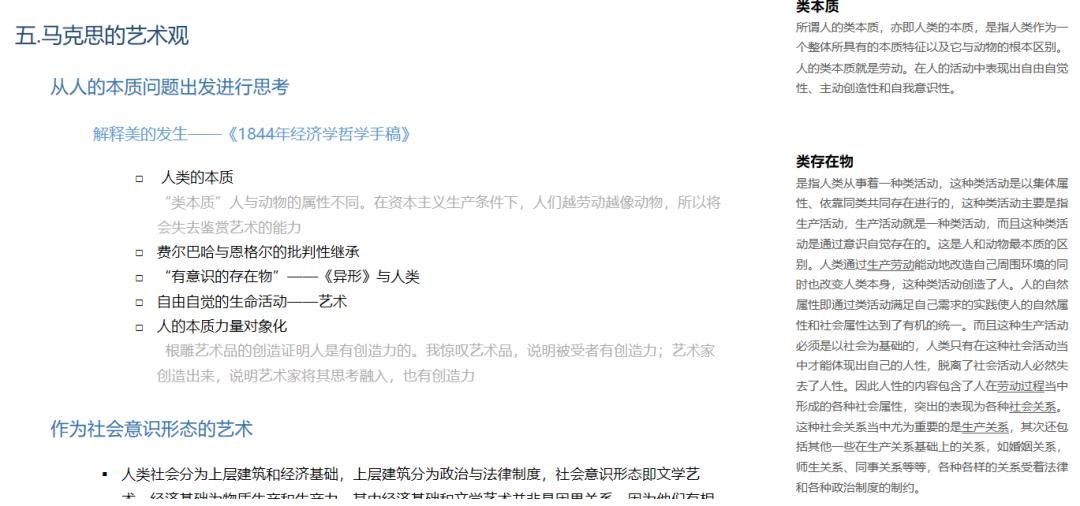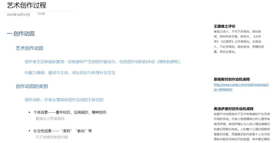 用深浅不同的蓝色表示不同层次的标题,笔记分为左右两大区域,左边为课堂内容记录,右边为补充说明,还配有网络链接,更加充实了内容,也充分利用了网络学习的便捷。整体逻辑清晰,条目清楚,让人一目了然。