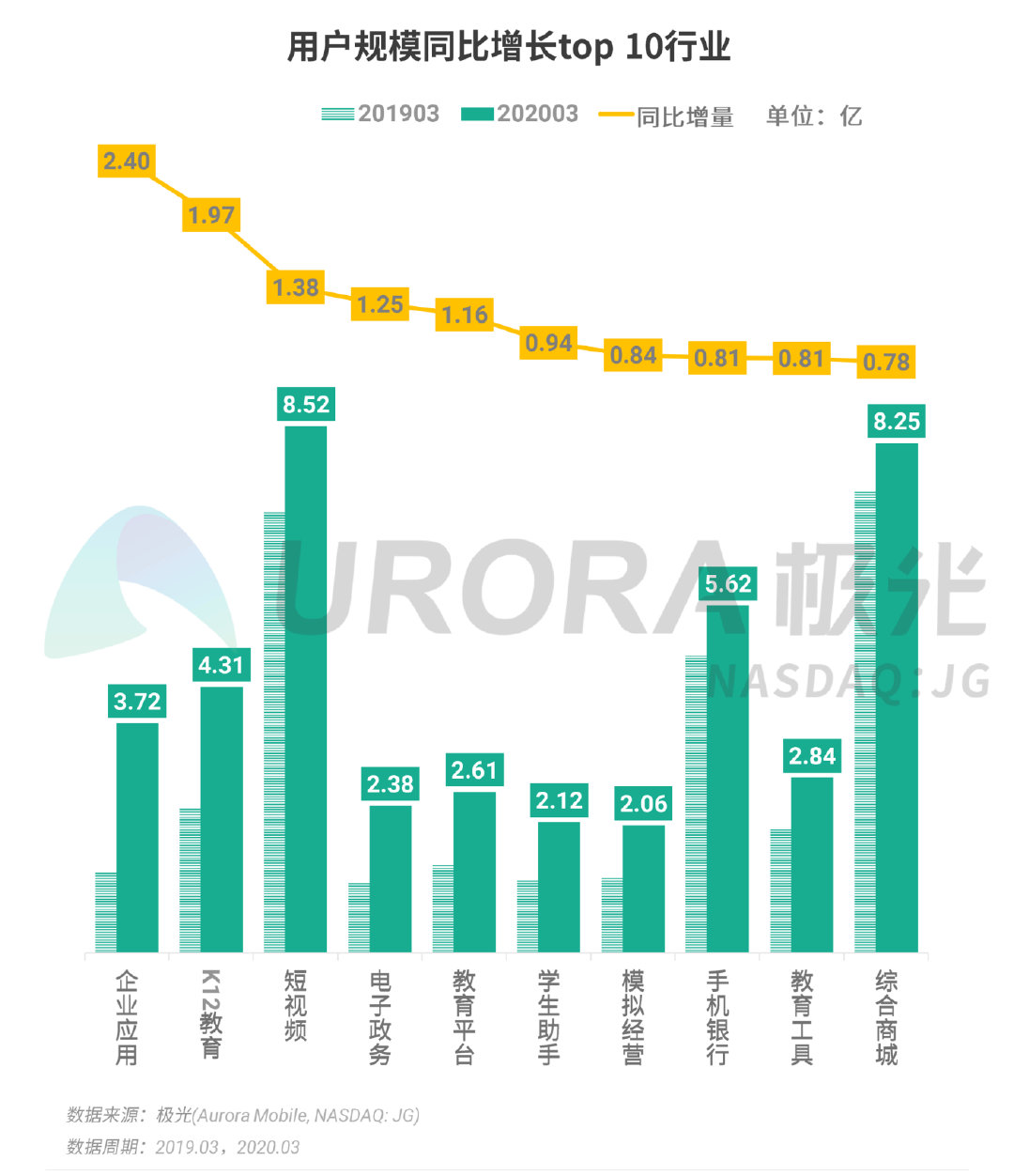 行业用户规模增长top 10