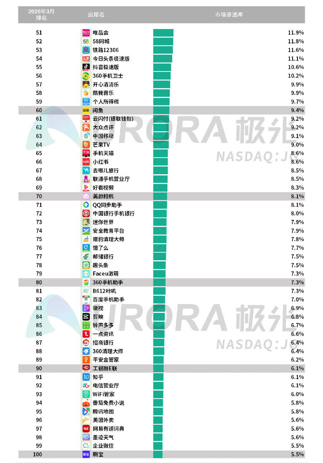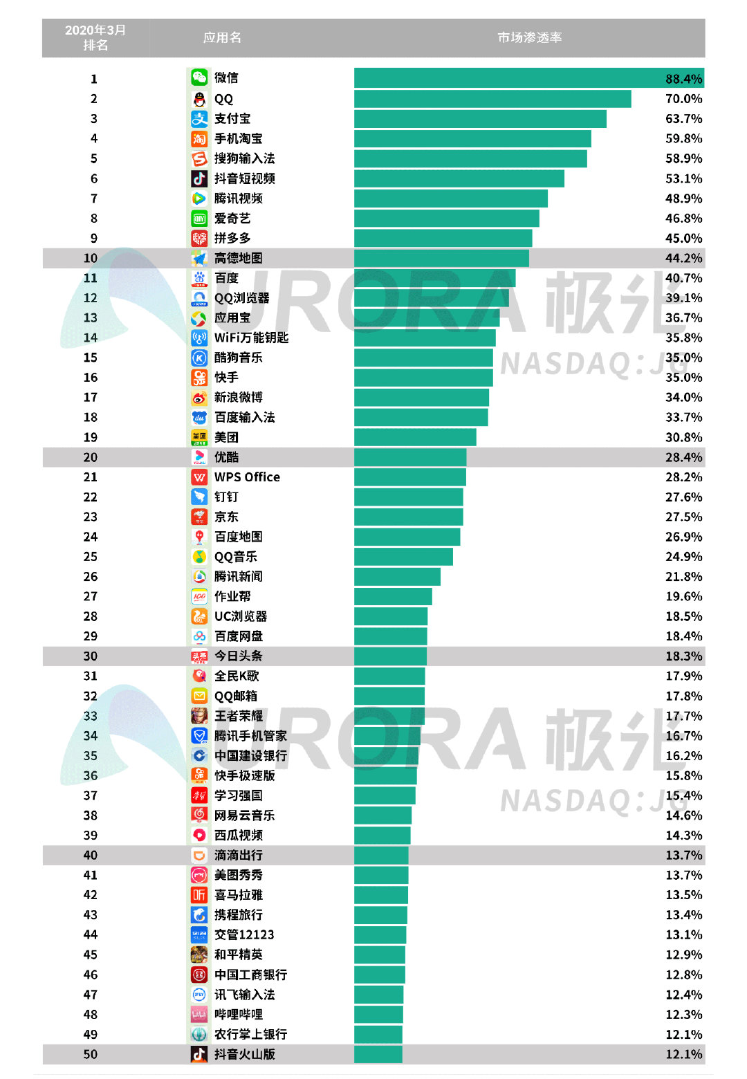 六、 App渗透率总榜