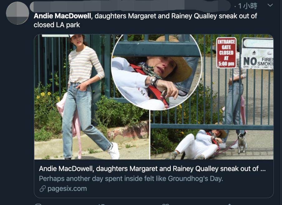 上个世界九十年代的老牌大明星安迪·麦道威尔最近就闹出了这么一档子事。由于新冠疫情严峻,加州关闭了公园等公共设施。