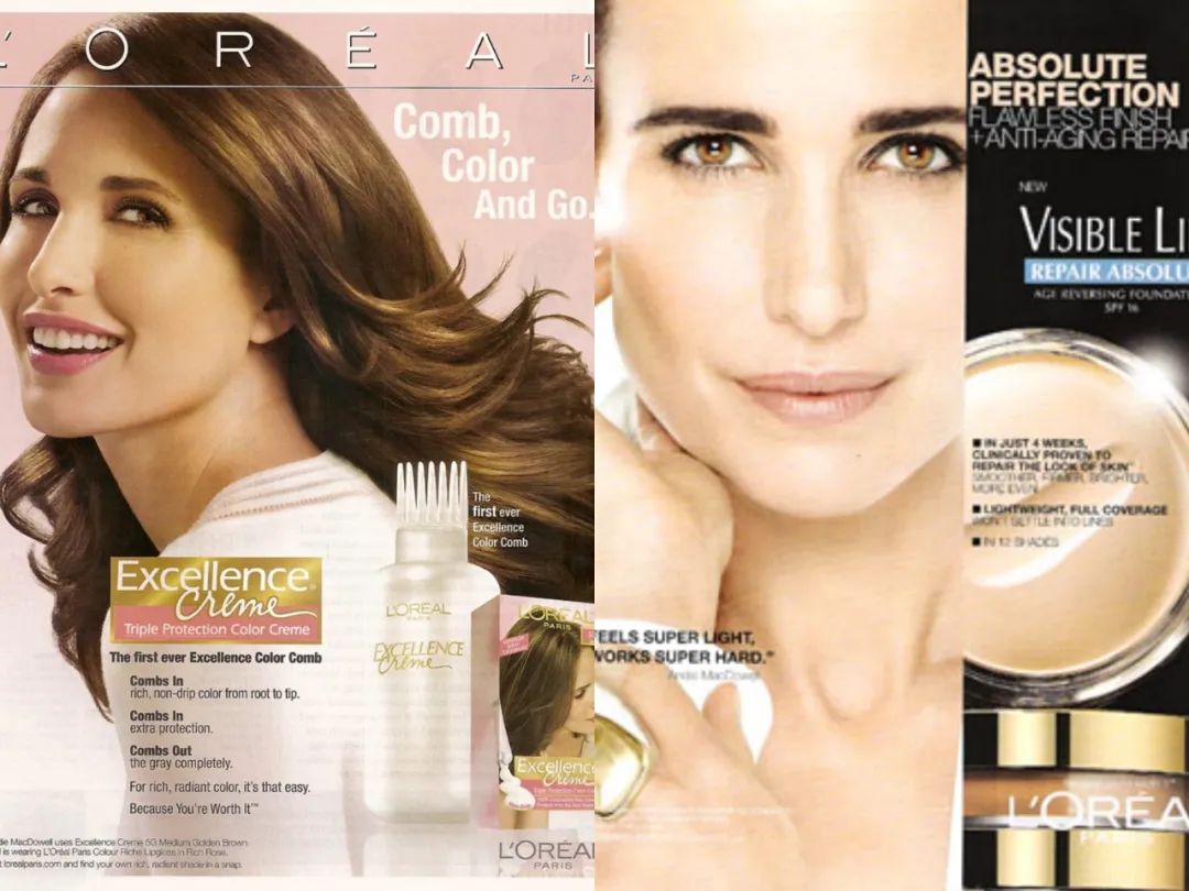 从80年代的浓妆艳抹风彩妆,到千禧年的各种洗剪吹染产品,再到如今熟龄女性的提拉紧致护肤品,欧莱雅的代言人多如星河灿烂,但安迪那张脸就像星河里气定神闲的恒星,永远自行发光。