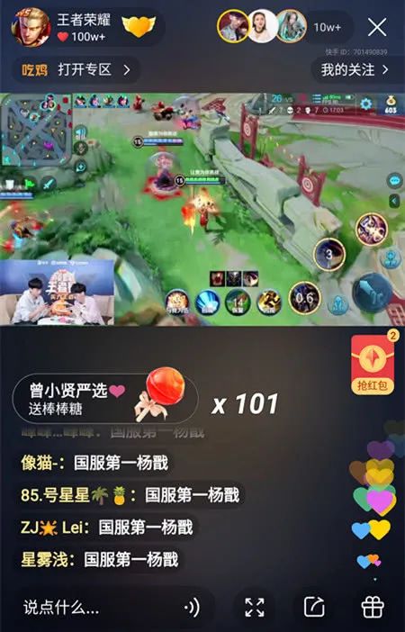 除了精彩的比赛呈现,在此次的快手直播中,快手人气主播天赐还身兼主持人重任,在游戏过程中,不断与张杰互动,让大家更为了解张杰歌手身份之外的游戏达人另一面。