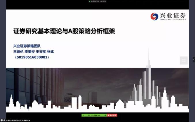结束了一天的工作,王德伦老师在线上与同学们如约见面。王德伦老师现任兴业证券首席策略分析师、经济与金融研究院总监、策略研究中心总经理,入选“上海青年金才”。从事证券研究十年来,王老师具备扎实的行业公司研究功底,开创性构建了“立体博弈”策略分析框架,并在此基础上结合DDM模型和投资时钟理论,重新构建了大势研判、行业比较及主题策略等支柱性策略研究方法论体系。